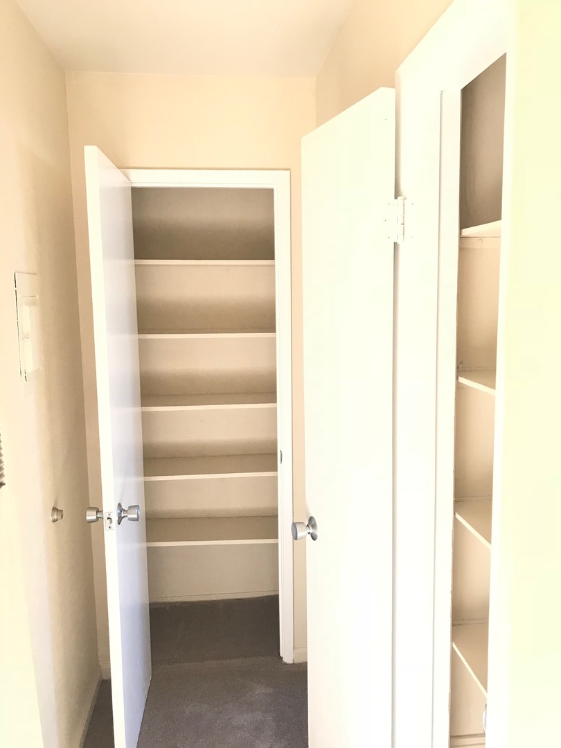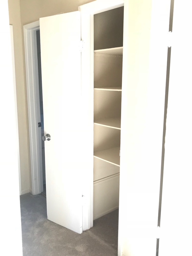 This spacious 1BRx1BA apartment with hardwood throughout with tile in the kitchen and bathroom. Dual pane windows throughout and newer horizontal blinds. Kitchen has Stainless Steel refrigerator and electric stove top and oven. Mirrored closet doors. Linen closet with built in shelves provides extra storage space. Bathroom has shower over tub with built in glass shower door.
