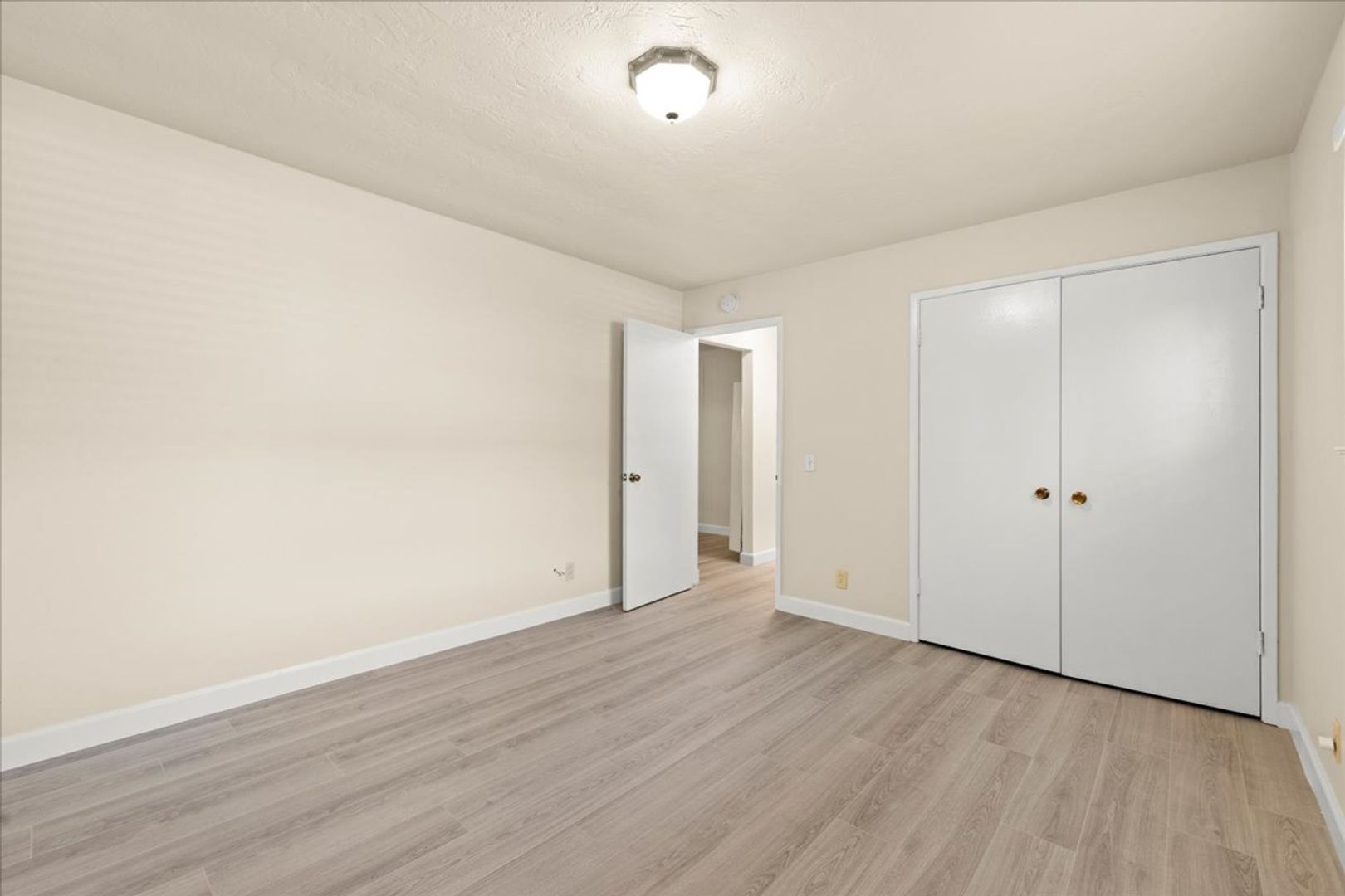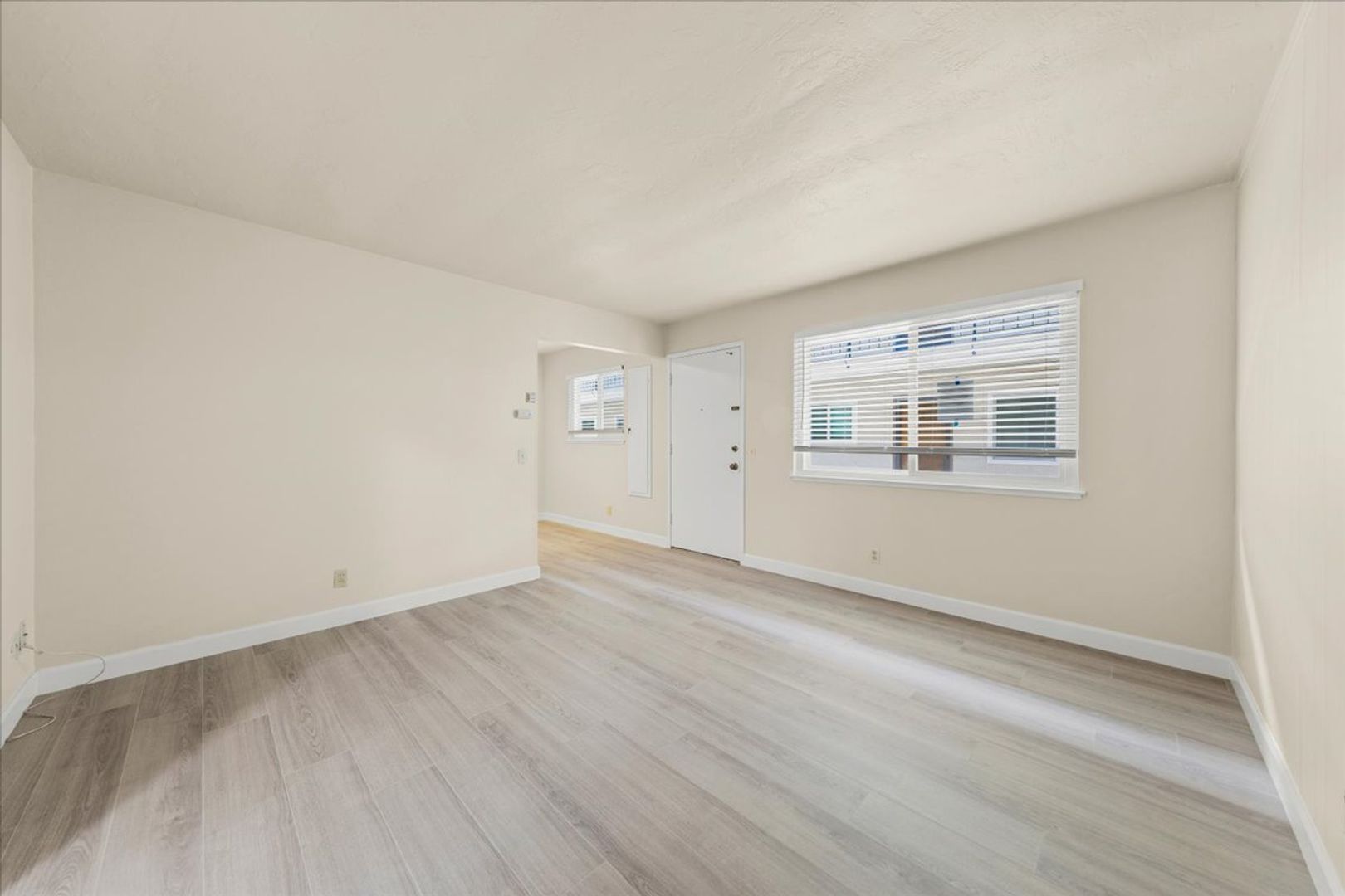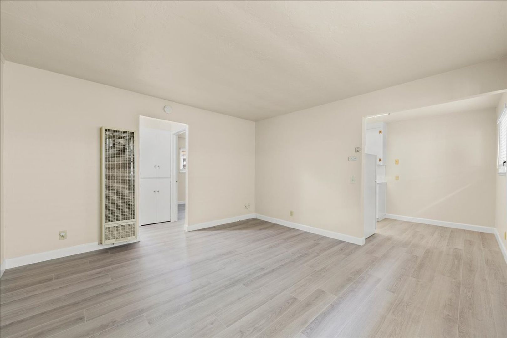 The living room offers newer laminate wood flooring and a window for lots of natural light.