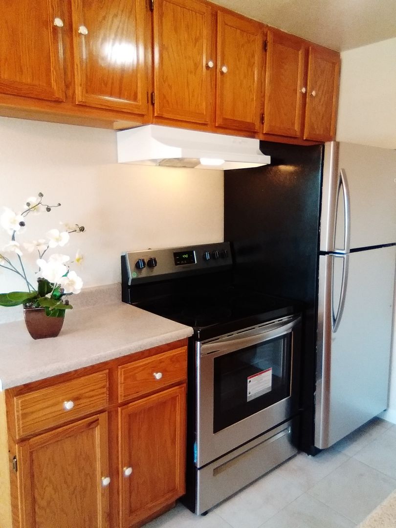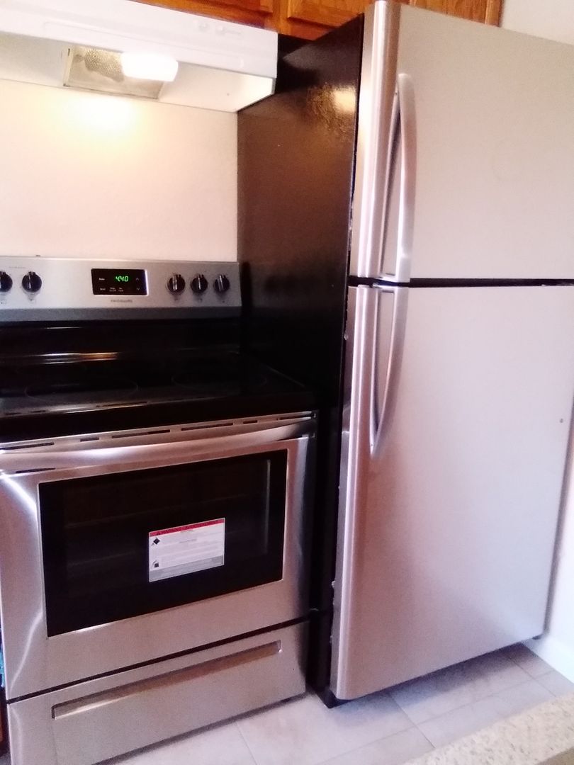 Kitchen has Stainless Steel refrigerator and electric stove top and oven. Mirrored closet doors. Linen closet with built in shelves provides extra storage space. Bathroom has shower over tub with built in glass shower door.