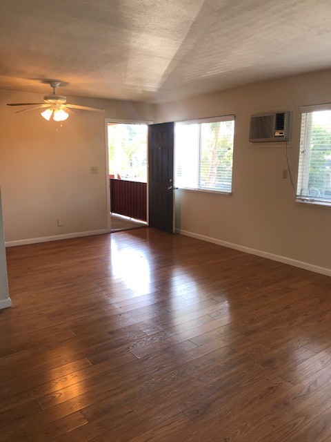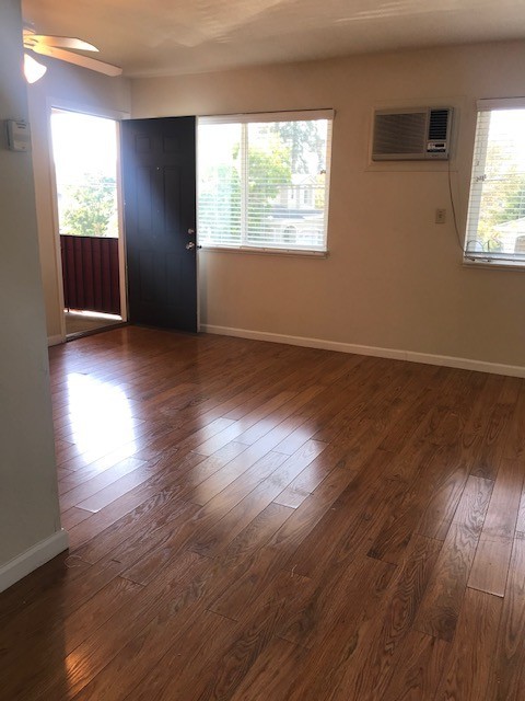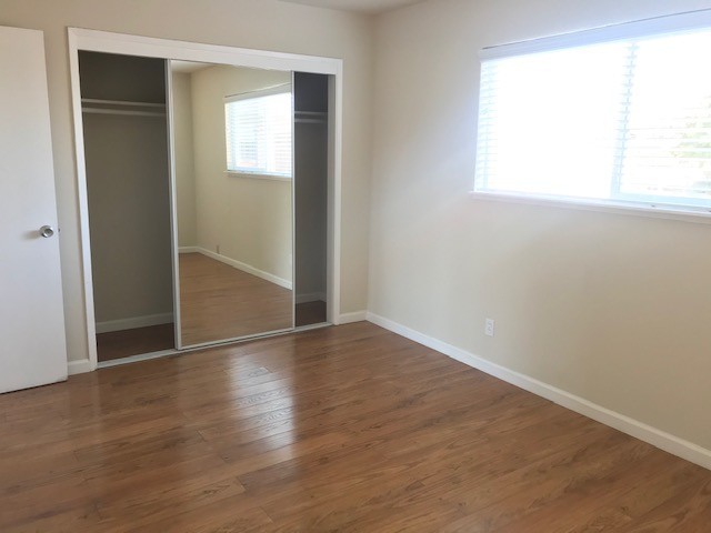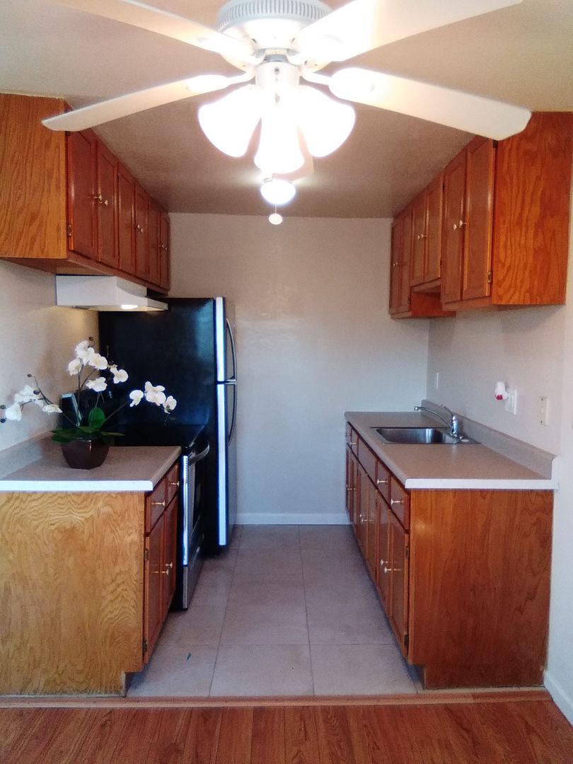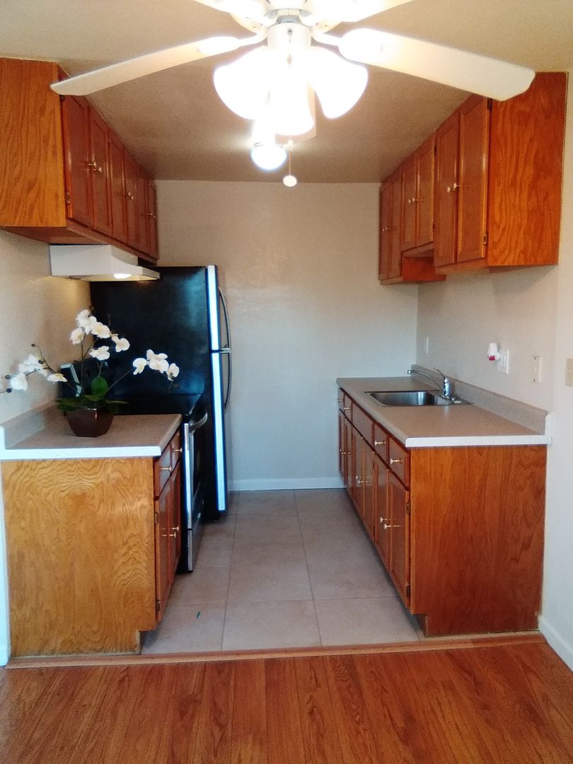 This spacious 1BRx1BA apartment with hardwood throughout with tile in the kitchen and bathroom. Dual pane windows throughout and newer horizontal blinds.